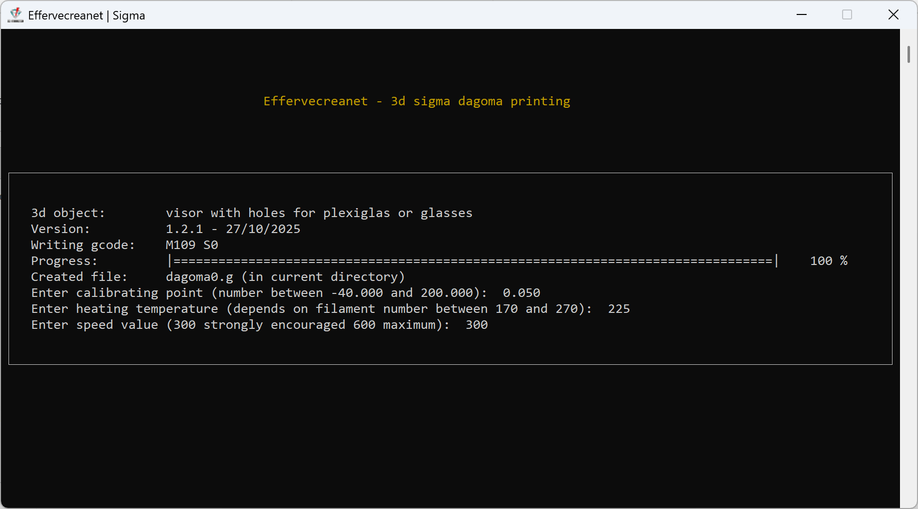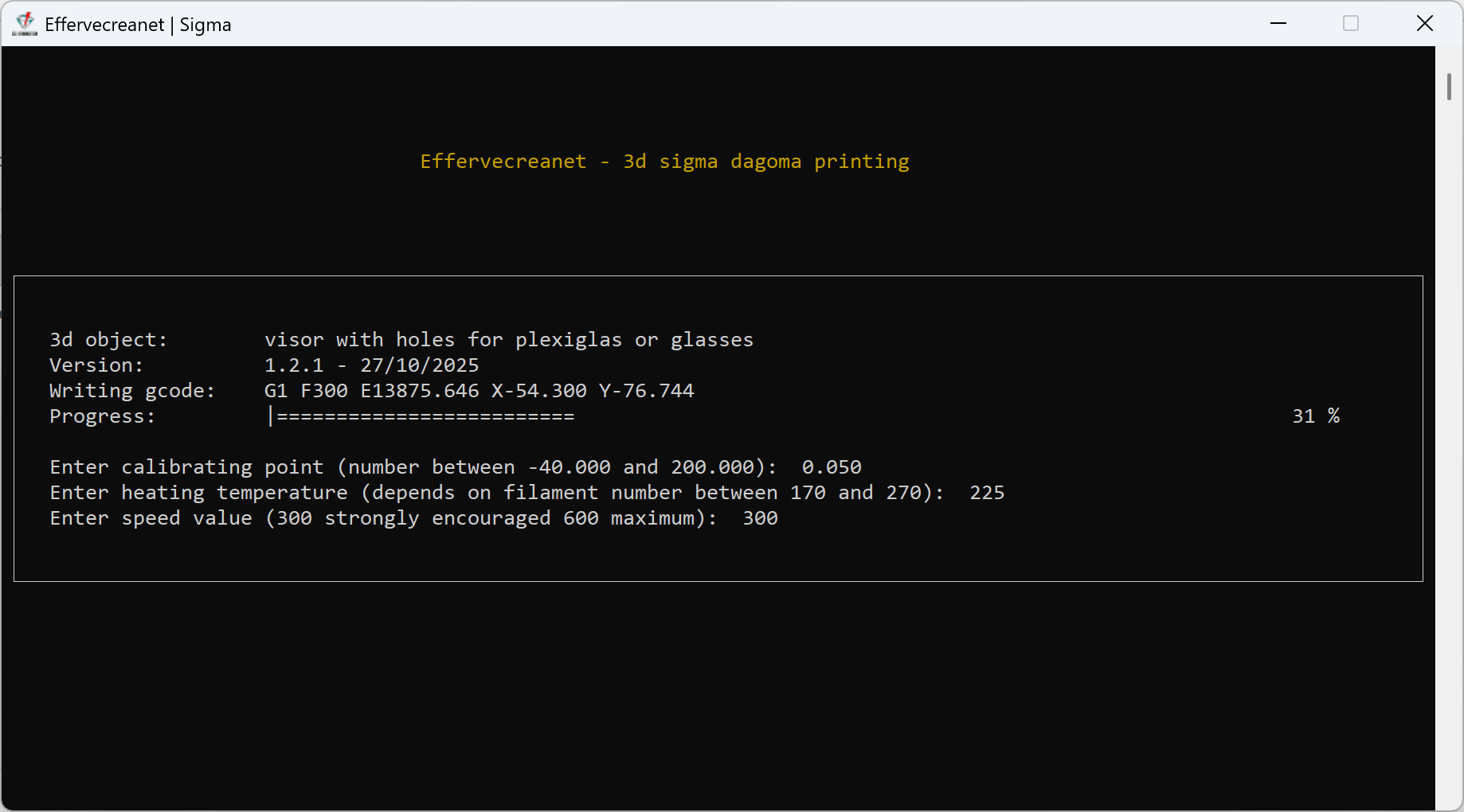 Effervecreanet - GCode generator for a visor with or without glasses