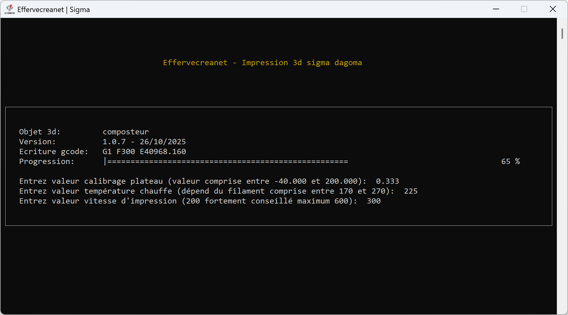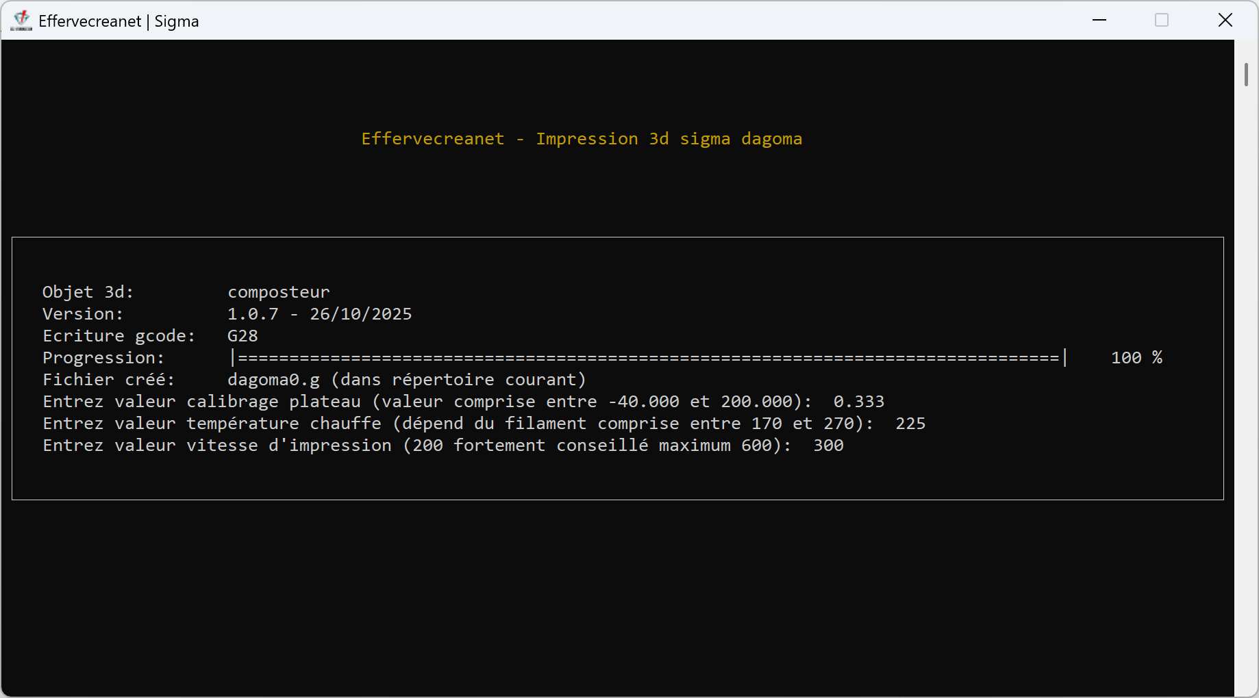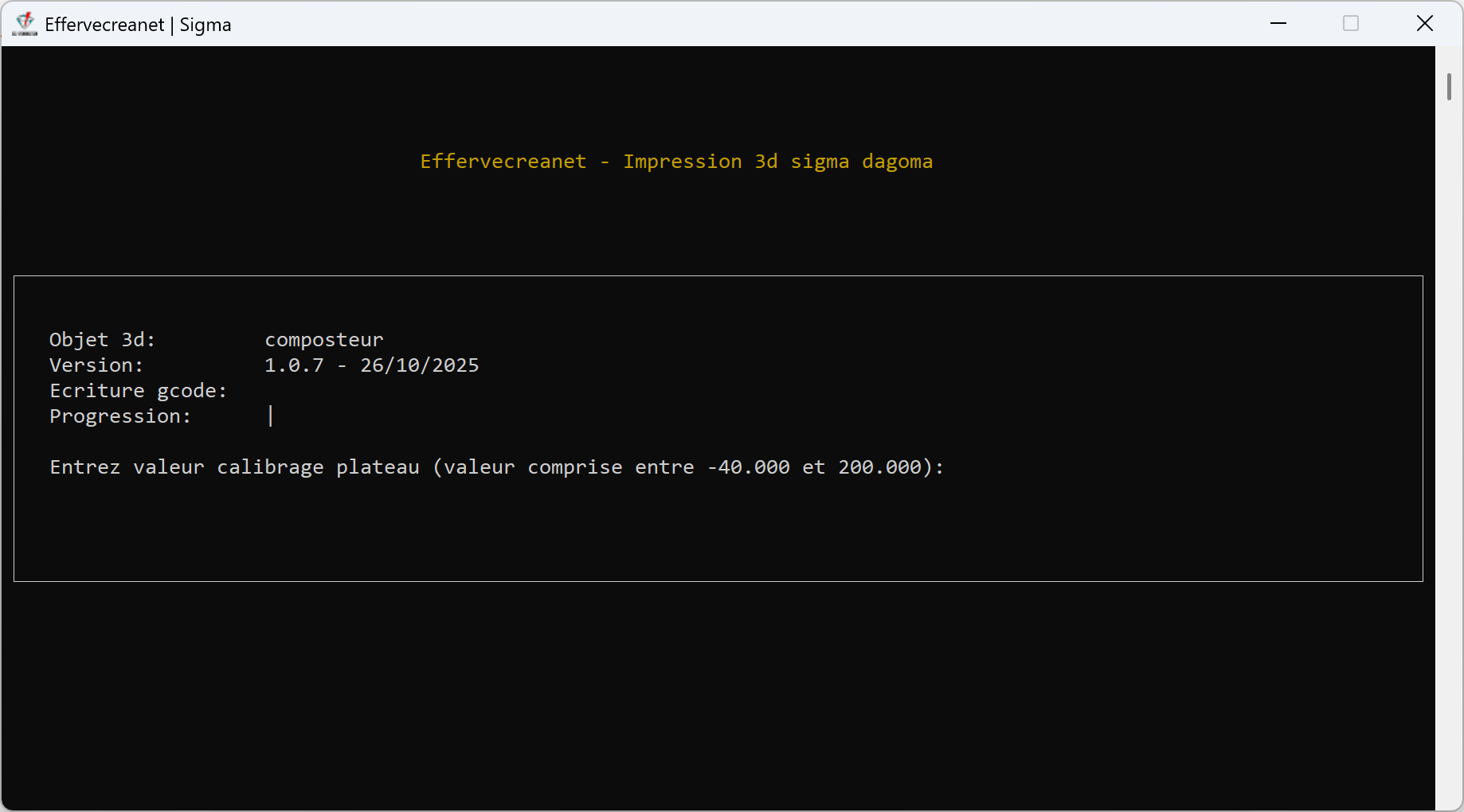 Lien vers CalibrerMagis (Fonctionne avec l'imprimante Sigma) et lien vers générer le gcode: